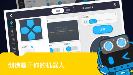 -焕然一新的 UI 设计,友好的交互界面。-操控性能更强,上手更简单:用户可以随心欲操控机器人唱歌、跳舞、亮灯,让STEAM 教育学习过程更轻松愉快。