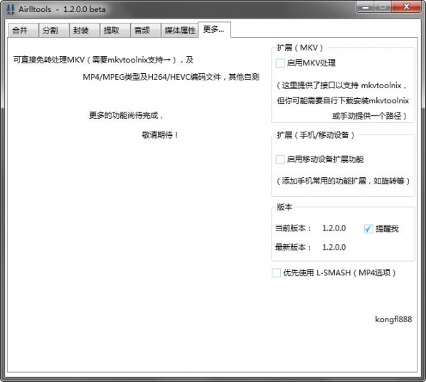 Airlltools是对视频源进行非线性编辑的软件,属多媒体制作软件范畴。软件通过对加入的图片、背景音乐、特效、场景等素材与视频进行重混合,对视频源进行切割、合并,通过二次编码,生成具有不同表现力的新视频。Airlltools实现对视频的剪辑,主要有两种方式,一种是通过转换实现,多媒体领域亦称之为剪辑转换,一种是直接剪辑,不进行转换。【功能介绍】