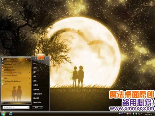 魔法桌面若星汉天空电脑桌面主题,一轮圆月上映射出暖暖的心型,两个人依偎在一起,在月光的映照下形成一幅美丽的画卷。此款主题充满了浪漫与神秘气息,赶快来体验吧。