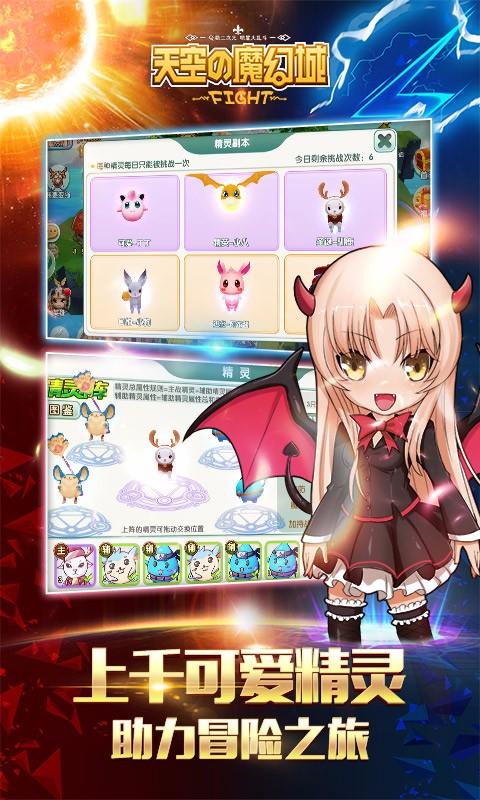 《天空的魔幻城》是一款Q版二次元动漫题材3D动作手游,上千二次元形象汇聚一堂,周周随番加入英雄阵容,款款惊喜!独创炫酷精灵助战系统,梦靥,夜刀神应有尽有,萌宠萝莉与您相约!顶级声优发声代言,让您享受殿堂级影音感官盛宴!独创半回合战斗玩法,全3D战斗视角,燃爆指尖!【游戏玩法】