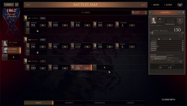 基于史实的指挥官们随着游戏的进行将会和玩家一起在战斗中成长进步。一名军官军衔的提升取决于其在作战单位的表现,但这毕竟是战争,他们也会受伤,甚至战死。新的军衔将会解锁军官们的新技能,使他们更有效地领导更大规模的部队。取得战斗的胜利同样也会给作为将军的你解锁新的技能,增加诸如侦查、政治影响等能力。