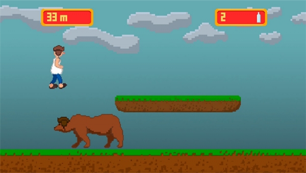 《穿越俄罗斯》是横版跑酷游戏,玩家操作一个狂饮伏特加的俄罗斯醉汉,不停的向前奔跑,途中收集各种伏特加,并且躲避拦路的各类动物(公牛,熊之类的),像素风格的世界一共有三个大关卡。【使用方法】