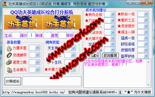 功夫英雄成长规划 V3.0 简体中文绿色免费版 1.可以对QQ功夫英雄的成长值进行计算。