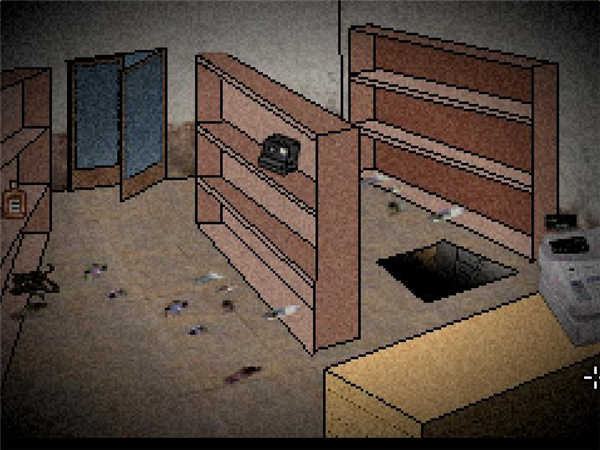 7、进超市拿照相机和酒,枪装上子弹,看看那个洞,给那只僵尸一枪,拿走眼镜给外面的黄头发男人,让他加入你,最后给照相机装上电池,对着墙上的画拍张照,走人。
