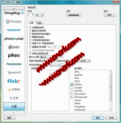 Wally V2.4.2 多国语言绿色免费版 Wally是一个免费的壁纸下载与更换软件,支持多种来源,例如本地文件、文件夹、远程FTP服务器,以及Flickr, Yahoo!, Panoramio, Pikeo, Ipernity, Photobucket, Buzznet, Picasa, Smugmug, Bing等Web服务。软件支持简体中文等多国语言界面 。