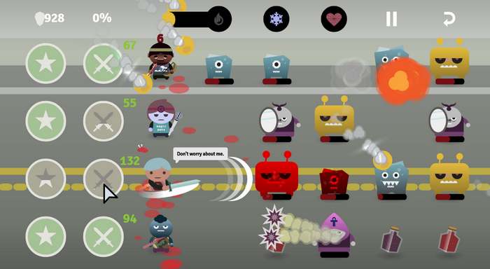 独特的游戏机制:允许玩家建立自己的派对,手动移动车道之间的字符,并在实时战斗中使用小学和中学的攻击。受“材料设计”影响最小的矢量艺术风格