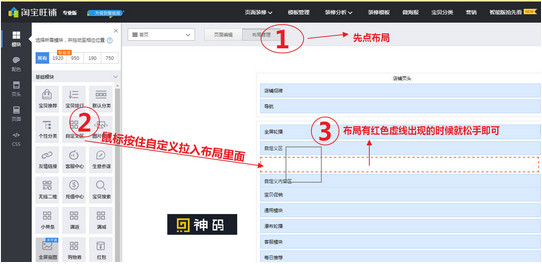 如何把生成的代码应用到淘宝或者天猫上:1、进去店铺后台,可直接点击店铺装修。如果对装修不熟悉的,可按照教程选择布局。