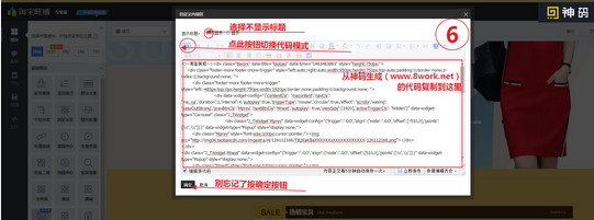 2.把自定义里面的代码粘贴到 图书所示的代码区域,一般选择去掉10px即可。然后生成代码,再复制到淘宝、天猫自定义代码模块里面。