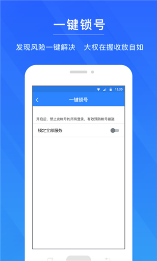 4、一键锁号:发现风险可立刻锁定帐号,减少资料和金钱损失