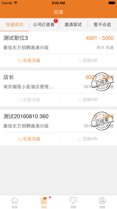 【投递中心】实时查看简历动态,接收面试通知,把握好机会