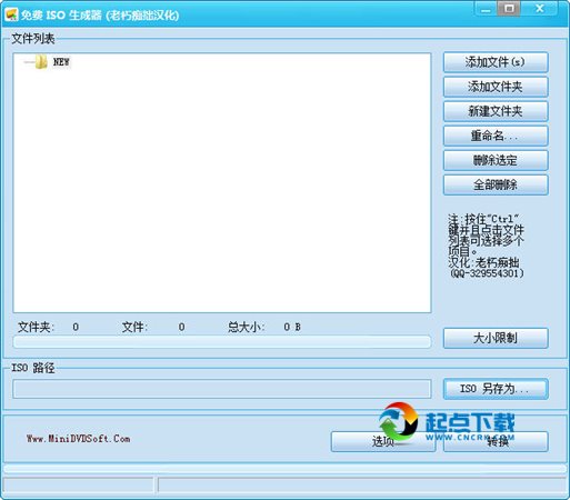 特点:使用Free ISO Creator可以轻易将任何文件和文件夹制作成ISO映像,同时你还可以修改原有的ISO镜像文件。