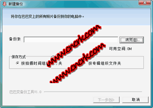 巴巴变备份工具 V1.0 简体中文绿色免费版 使用巴巴变备份工具可以将用户在巴巴变的照片全部完整的保存到自己的电脑中。并按照片的拍摄日期或专辑组成文件夹。 巴巴变备份工具是巴巴变VIP用户的特有功能。巴巴变备份工具不仅可以实现完整备份,还可以在完整备份基础上实现差异备份。