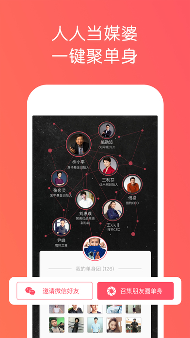 【用户真实】真人媒婆背书,真人真资料真心找对象。【圈层计算】通过媒婆与媒婆,媒婆与单身之间的社交关系网,实现大数据下的圈层计算。