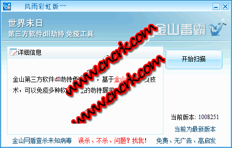 第三方软件库文件(dll)漏洞会造成windows被攻击,金山毒霸发布该工具可以使系统免遭蓄意制造的dll文件攻击。