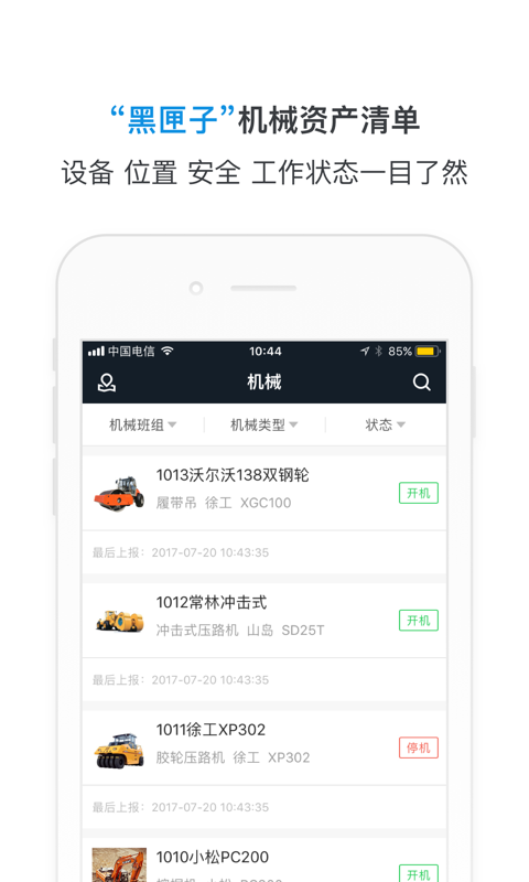 机械指挥官是国内领先的工程机械智慧管理解决方案,涵盖机械设备位置、安全、油耗、工作时间、施工效率分析,全方位提高施工企业的设备管理效率。机械指挥官是南京智鹤电子科技旗下,专注于工程机械管理的物联网解决方案。从机械的使用、保养、维修、安全风险控制各环节,将工作时间、地理位置的实时数据与企业运营管理链接在一起,实现G7手机管车,通过工程机械Saas平台构建您的现代化信息管理系统。