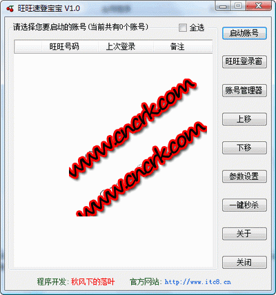 旺旺速登宝宝是一款阿里旺旺管理工具,它能快速登录、关闭、管理阿里旺旺软件,免除每次登录输入帐号密码的麻烦。具有批量管理帐号密码的功能,支持导出号码和密码作为备忘查看或以后批量导入号码,同时支持从文本文件中批量导入添加号码功能。该软件加密方式独特,能够有效的避免阿里旺旺帐号密码被盗取,做淘宝的卖家不容错过哦!