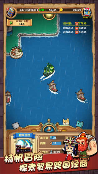 用有限的资源驾驶舰队驰骋广阔的海洋!注意你的水手消耗,没有食物和水的话你会消失在这片大海之上!