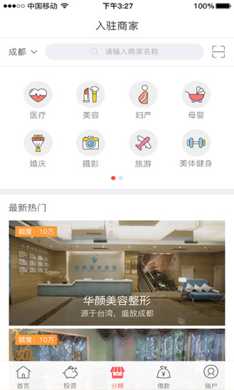 通过女人贷app向右转入驻商家消费分期,免收服务费.