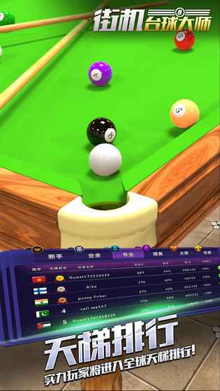 《街机台球大师》国内首款真人实时对战桌球手游,完美还原现实8球玩法,简单流行的操作方式,绚丽的动画特效,配以真实的物理参数,精准的进球,激动人心的赛事,究竟谁才是冠军?让我们拭目以待。