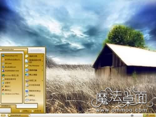 阴沉的天空,荒凉的草场,破旧的木屋,这个画面给人一种悲凉与沧桑感
