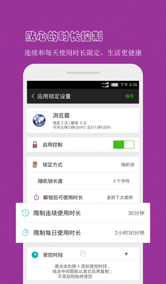 3.独创一键锁定,让智能手机秒变功能手机,防沉迷我们更懂你;