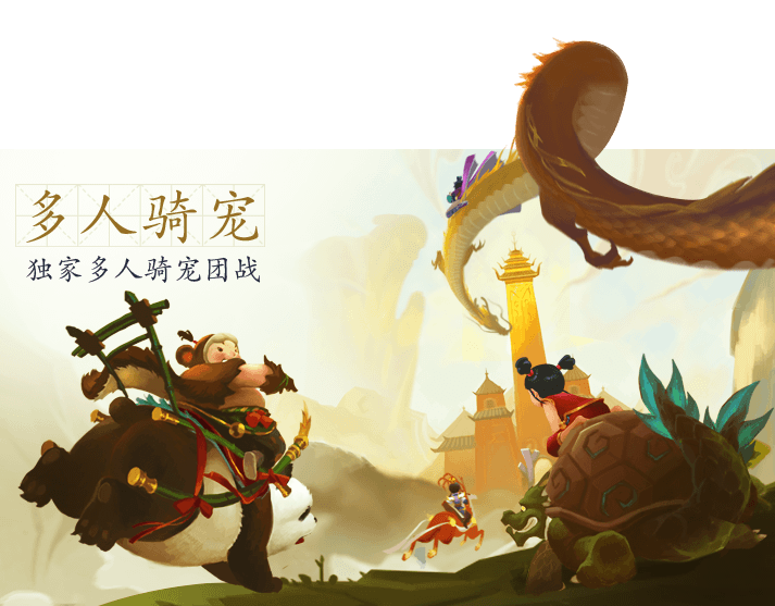 金蟾、凤凰、熊猫、玉兔,为你带来神话中的珍奇异兽,多人骑宠,带妹巡游,更能骑宠作战,畅享团战斗法。