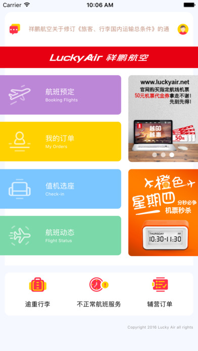 1.预订机票:祥鹏全体精彩航线汇聚于此,竭诚满足您的出行需求;2.便捷退票:可在手机上提交退票退款申请,告别繁复流程;