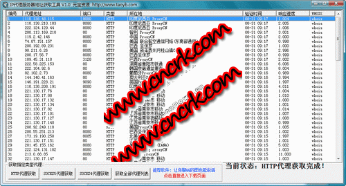 自动获取最新有效三种IP代理地址,分别:HTTP代理地址,SOCKS5代理地址,SOCKS4代理地址,方便快捷,去掉你在网上找的麻烦,而且获取的IP代理为最新有效的