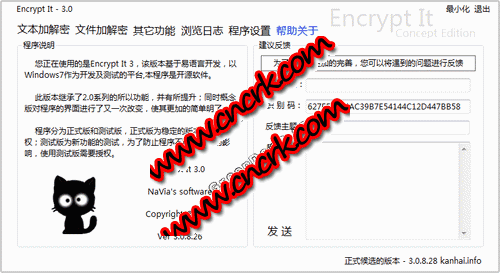 Enctypt It V3.0.8.28 简体中文绿色免费版 Encrypt It 3,基于易语言开发,以Windows7作为开发及测试的平台。 此版本继承了2.0系列的所以功能,并有所提升;同时概念版对程序的界面进行了全面改变,使其更加的简单明了。在3.0版本中,程序改用DLL调用的方式完成各项功能,以使主程序更加的稳定。新版本加入了日志系统,可以方便的查询作出的各项工作,同时,也可以选择操作是否计入日志。
