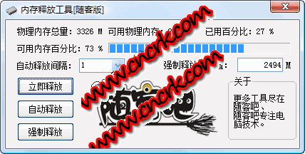 Win7内存释放工具立即释放,自动释放,强制释放 三种功能,如果你的电脑内存卡死,强制释放,平时优化电脑建议开启自动释放[软件会自动最小化]