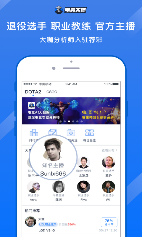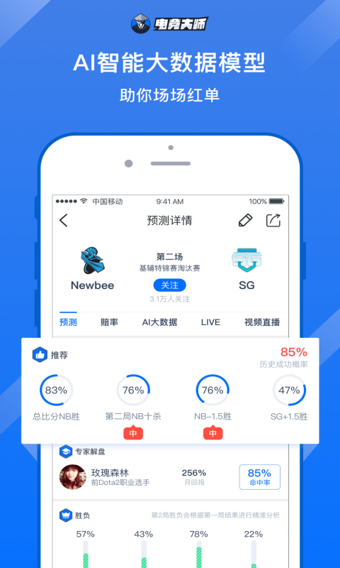 电竞大师是为广大电竞爱好者提供的电竞赛事分析,预测的数据平台。并有国内知名战队成员,主播进行赛事比分预测。电子竞技大数据模型赛事分析,赛果预测,战队数据分析。职业选手,主播赛果预测。