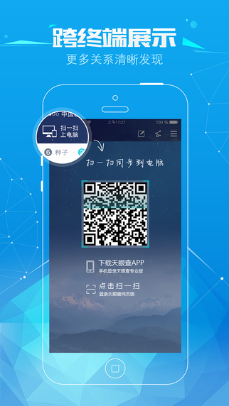 关系太复杂,看不清?不要紧!天眼查专业版支持移动端、浏览器端同步展示,扫一扫上电脑。浏览器端支持群落关系呈现,关系筛选,一键导出等功能,关系挖掘就这么简单!