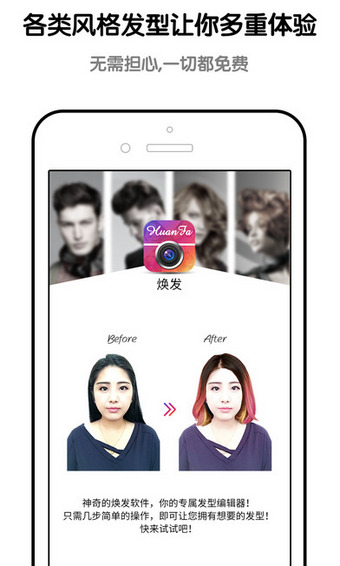 焕发app是一款专门为用户提供发型探索服务的APP。继强势登录iOS市场受到十万级用户的追捧后,乘胜追击即将进入安卓市场。相信两大市场火力全开,定将引领一股全民换发型的狂潮!