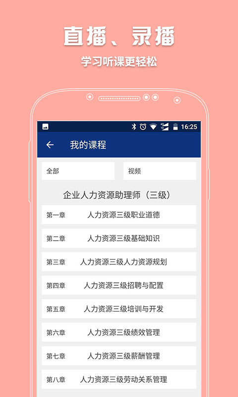 3.视频课:提供直播课程的视频回看,让您随时随地回顾上课内容