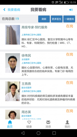 预约挂号:患者可以足不出户,预约上线医院的专家号源;专家问诊:患者可以采用图文和视频的方式,实现患者与名医的远程沟通,极大提高就医效率,实现足不出户看名医;