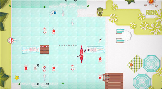 12种不同类型的泳者:每一位都拥有不同的游泳轨迹,无论是简单的蛙泳者还是泳姿更加华丽的其他勇者甚至是恼人的到处扔水炸弹的熊孩子,应有尽有。12种可供交互的物品:浮标,鳍,水枪甚至还有皮艇。