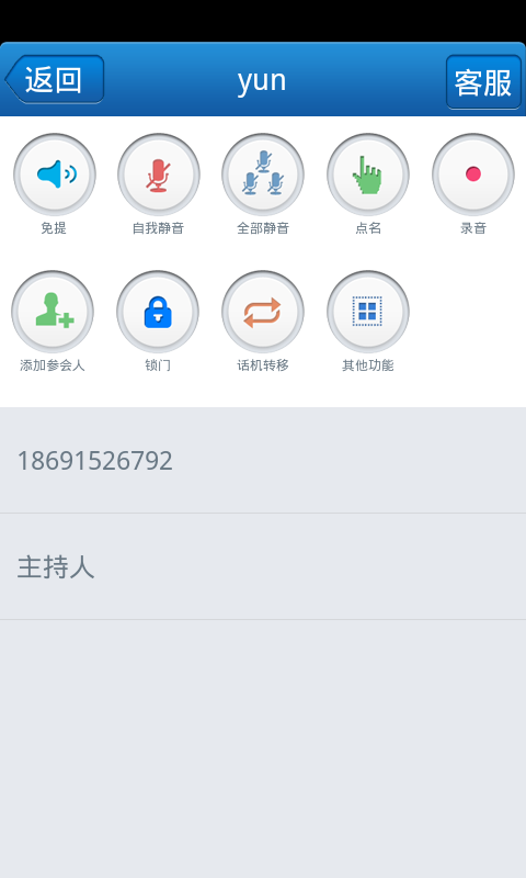 4 会议控制: 进入会议后控制 (群体静音/解除静音, 加锁/解锁会议, 将一名参会人静音/挂断, 呼入/邀请其他参会人、录音等)