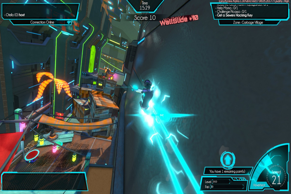 《炫空:玩家起义》同时提供单人和多人的游戏体验。任何时候,你都可以在离线与在线模式间切换,加入你的好友,或与来自世界各地的其它玩家的小队一同冒险。《炫空:玩家起义》同样也提供很好的社区支持,能够让玩家自行创建任务或小游戏。玩家必须找到并入侵反游戏宣传机构的中心,解放被束缚的人民,取回被没收的游戏机,最终根除货源,推到新市长。城市中散布着许多浮空巡逻机器人,被发现以后就会开始一场追逐战。玩家可以为自己的队伍招募新成员,每个队伍成员都可以成为玩家角色,并可以获得经验,升级各项数值。