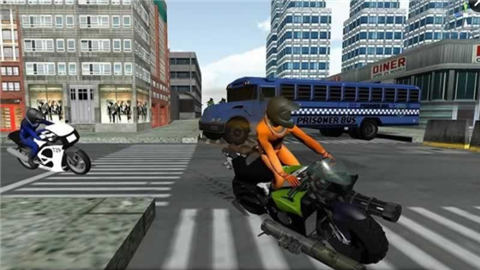 玩家在游戏中将驾驶摩托车进行越狱,逃脱警察的追捕证明自己的清白!在城市中驾驶摩托车飞驰,并到达逃亡地点是玩家在游戏中的主要任务!感兴趣的话就快来下载吧!