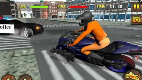 摩托越狱大逃亡手游是一款有趣的休闲游戏,游戏采用了精致的3D画面和人物模型,玩家在游戏内是一位骑摩托车的逃犯,你需要控制摩托车在这个广阔的城市逃跑,一旦被警察抓住你就失败了,非常考验你的反应能力。