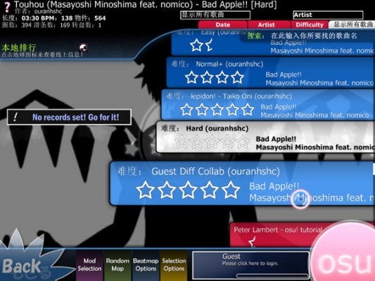 osu游戏是一款休闲好玩的音乐节奏类游戏。该游戏玩法非常简单容易上手,玩家只需要在游戏的背景音乐中,根据音乐的节奏来敲击鼓点,打出更加美妙的音乐。