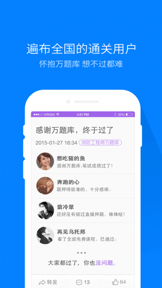 没错,无论你的家在哪,你都能享受到「首都北京」的优质教育资源,轻松打破教育资源分配不公的束缚,让人材成为更人才!消防工程师万题库每天都有免费的直播课,你可以随时享受惬意轻松的学习方式,不被时间和空间束缚,随时与「老师」、 「同学」交流考试心得!即使你是0基础,我们也不愿让你感受到一丝学习的痛苦与压力。