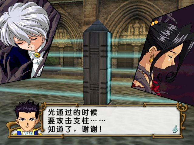 用方向键左右旋转波度盘(改变连接周波数),用方向键上下旋转磁鼓(选择缩短波度盘),用空格键决定通讯/接收通讯,用X键结束通讯。需要注意的是,在战斗中适时使用“队长”和“保护”命令是十分必须的。队长命令是大神所使用的特殊指令,包括风、林、火、山4种。风是以气合、回复为主,不能防御;林以静制动,可以胜任全部行动;火重视攻击,气合为必要手段,不能回复;山重视防御、恢复,气合不能使用。保护命令可大幅提升被保护对象的好感度/信赖度,最多可提供3次,在战斗中途可以变更保护对象。