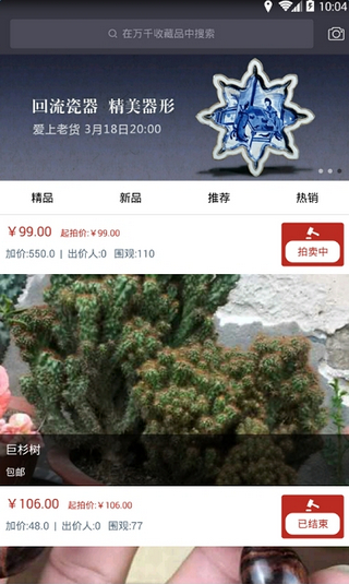 1、一口价商品的购买,拍卖品的出价成交购买2、直播功能,艺术类老师开设讲堂现场直播,玩转生活文艺圈