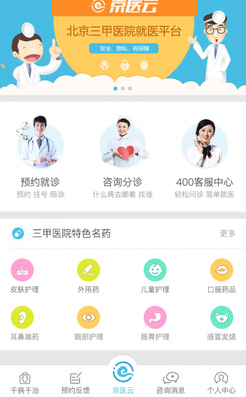 京医云(北京)信息科技有限公司,是一家以整合北京三甲医院的优势医疗资源,合理利用首都优势医疗资源,优化首都医疗服务规模和服务质量的现代化医疗信息科技公司。公司建立以患者为中心的服务宗旨,重构就医路径,提升就医效率,改善患者就医体验,向互联网医疗产业链的纵深发展。帮助客户即时、便捷、高效地选好医院、找准诊室、约好医生,推动医疗资源和患者需求之间的良性配置和使用为使命。京医云收录了北京市86家三甲医院,2439个科室,20720名医生信息,为广大市民提供“预约挂号”、“治疗与康复”、“慢病管理”、“健康体检”、“高端定制”“导医导诊”、“绿色就医通道”、“就诊陪护”、“预约检查”、“取送报告”、“诊后关爱”等服务。