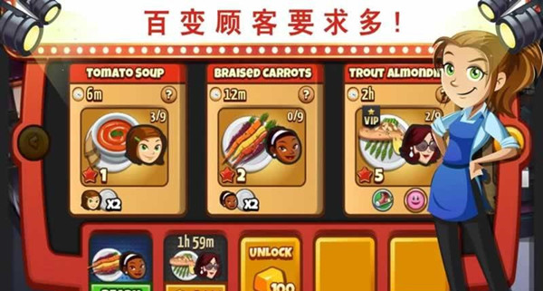 美女厨师2016无限金币版是一款制作精美且极易上瘾的模拟经营类游戏。您需要打造一家属于自己的高级餐厅,管理一支技艺精湛的厨师团队。这是一款以快节奏为主的餐厅管理游戏,顾客至上是唯一的经营之道,玩家们必须要端上顾客所指定餐点即可。从汉堡到薯条、寿司、水饺等等不同餐点,您只要点击相关的位置,并再将餐点送到顾客眼前即可,喜欢的玩家快来试试吧!