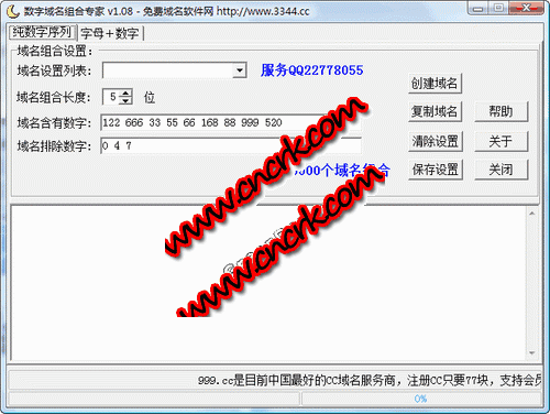 数字域名散发着迷人的气息,5566、520、168、163、110到处是这样蕴含神秘力量的数字组合,也是人们表达特殊情感的载体,为了得到理想的数 字域名,米农挖空心思,需要大批量查询相关的数字域名,本软件专门创建想注册的域名组合,方便米农简单注册域名,软件快速组合出同类的域名,自动排序速度 飞快,完美演绎了功能的实用性和简单的操作性的统一,简单实用,件轻松上手,是米农可靠的好助手。免费软件,免费升级。COM域名交流群744345,敬请关注我们网站,下载最新版本