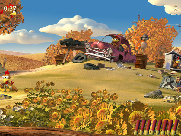 上手度:怪鸡射击系列的操作都非常简单,鼠标操作即可。控制准星瞄准敌人进行设计,当手枪子弹打完后右键重新装弹。在射击中要注意消灭持枪的敌人,如果打到无辜的动物会扣分的哦。