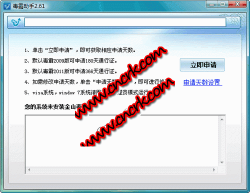 先安装毒霸,然后执行该程序,选择申请时间,默认一年(366天)。