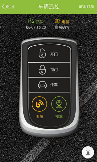 一键租车一键预约车辆、寻车、控制车辆、还车,还车随意还到公共停车位。